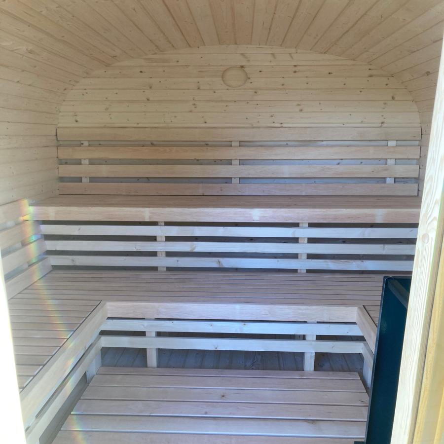 - Vnějším a vnitřním osvětlením, v saunovacím prostoru podsvětlenými lavicemi LED světlem
